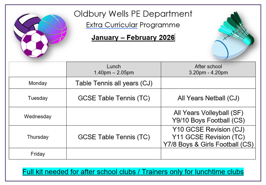 … and of course every sport you can imagine can be experienced and become part of your child’s school life at Oldbury Wells.