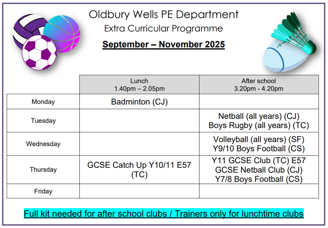 Extra-Curricular, PE Fixtures and Clubs